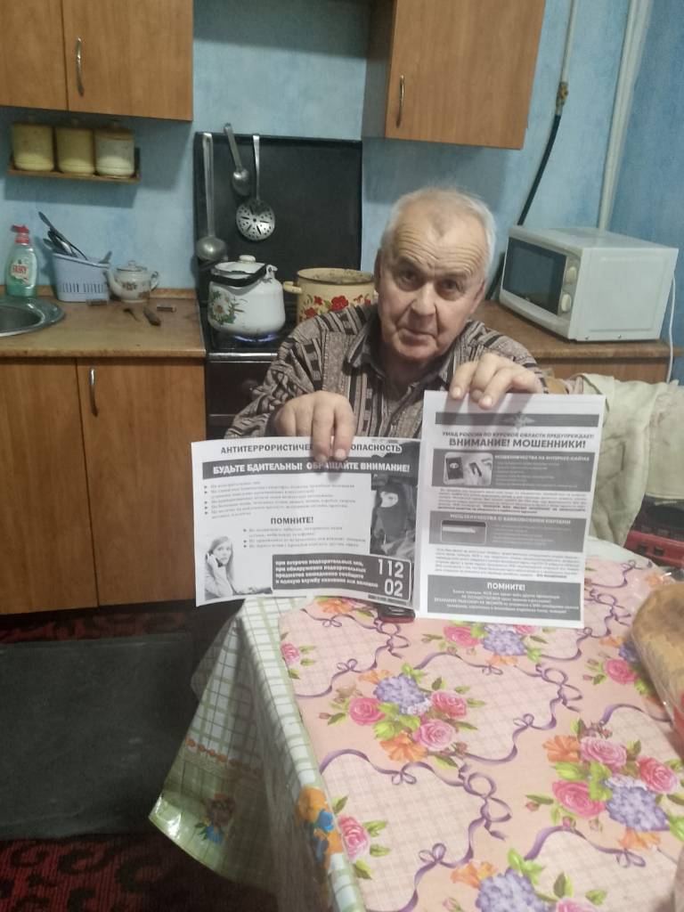 В связи с этим в ОБУСО «Льговский МКЦСОН» активно продолжается работа с получателями социальных услуг. Сотрудники проводят беседы и вручают информационные памятки среди населения и своих обслуживаемых о том, как не стать жертвой мошенников и по антитеррористической безопасности.