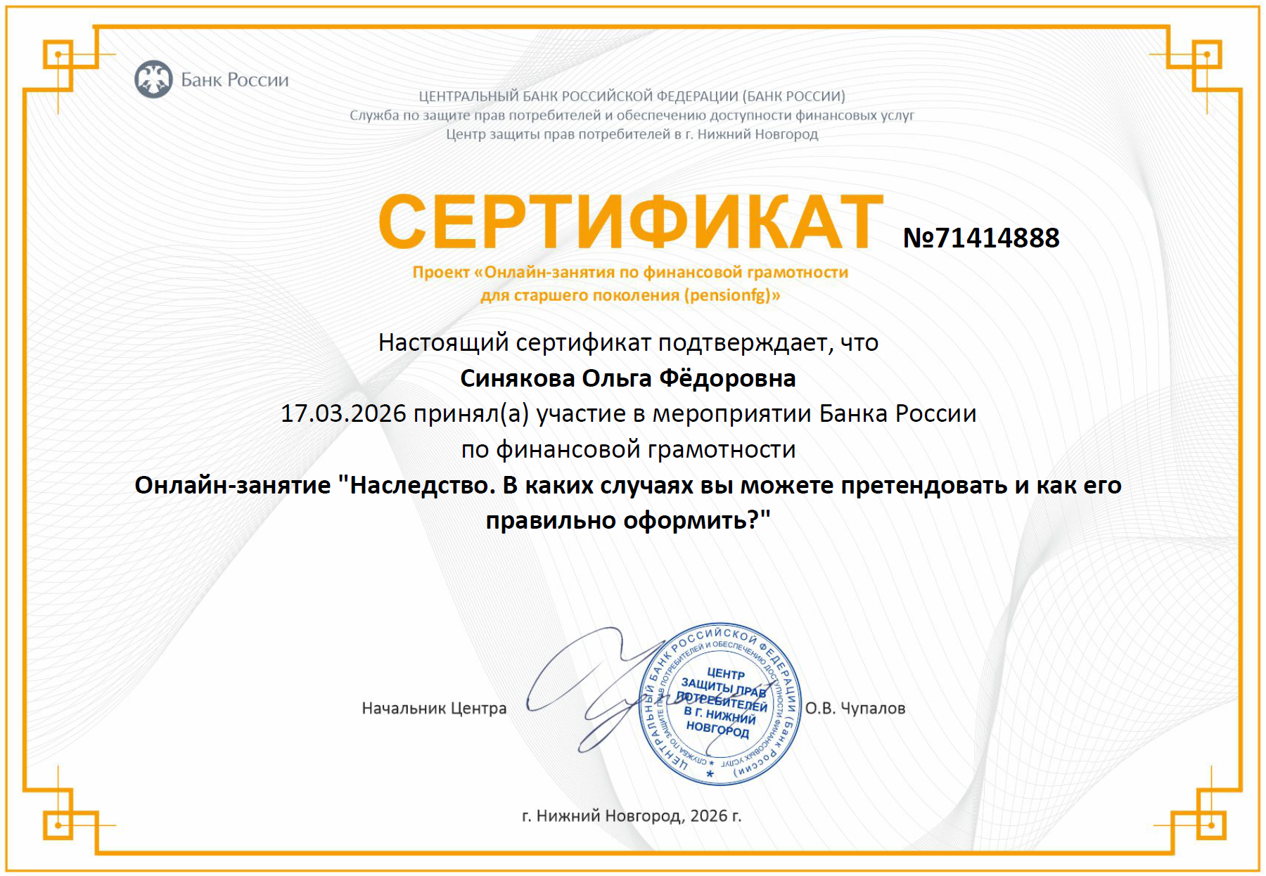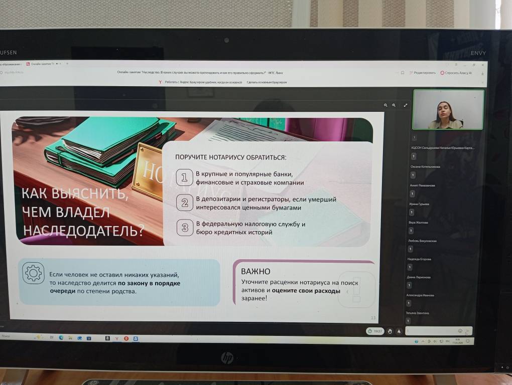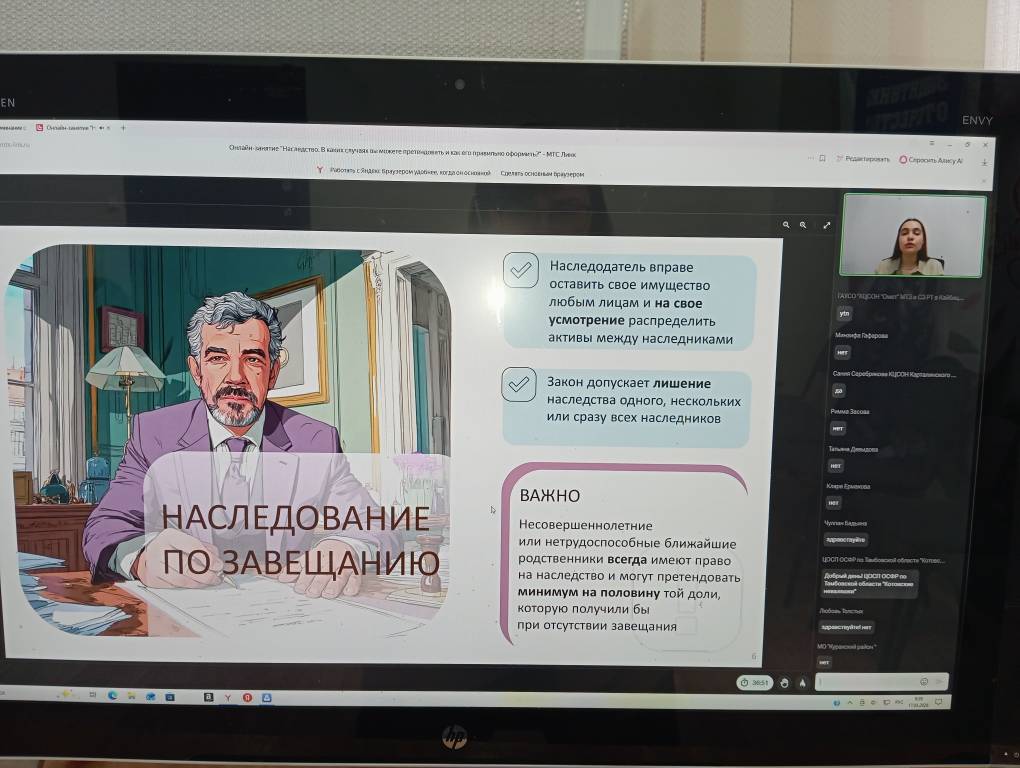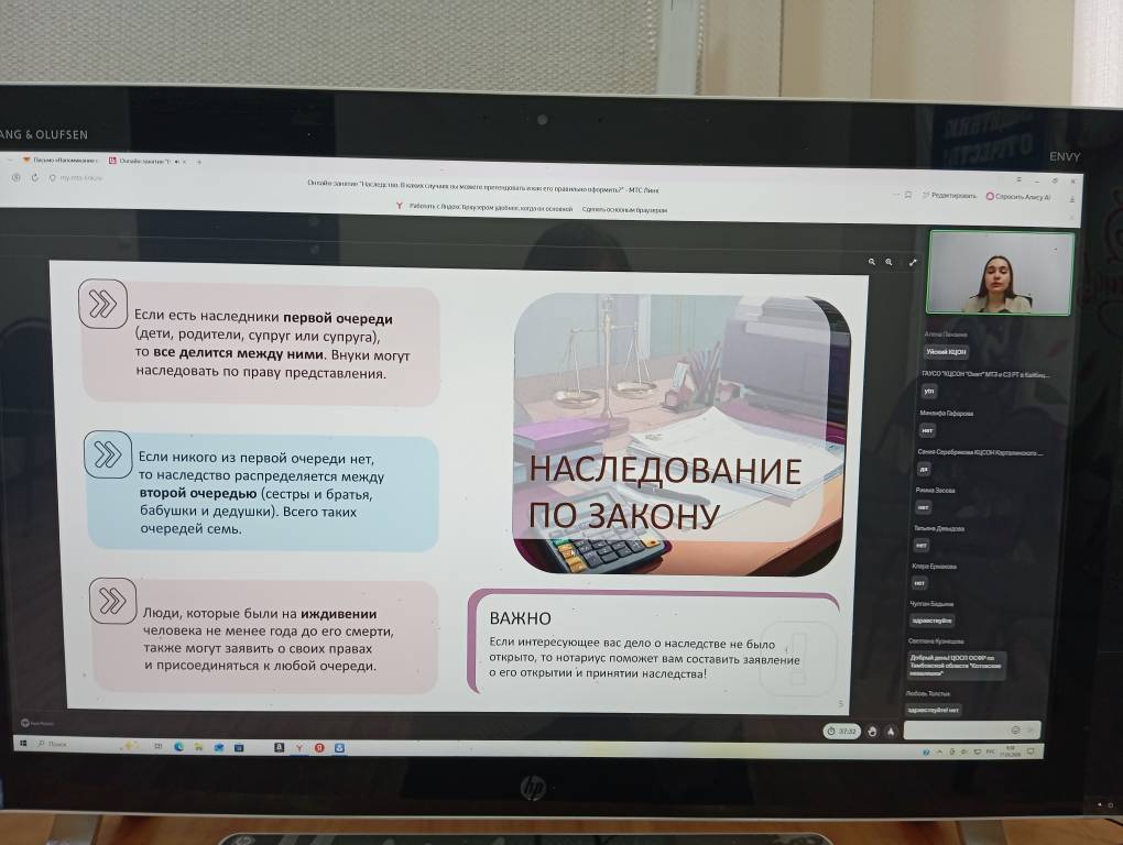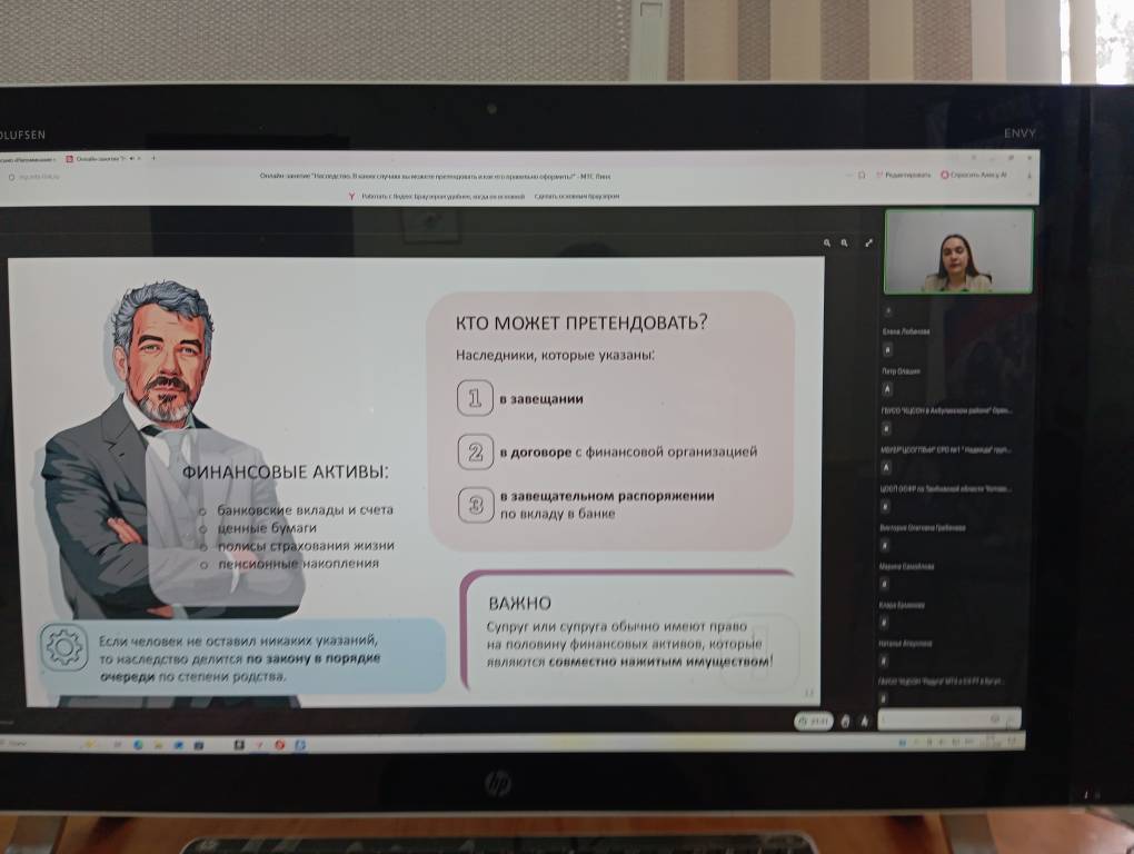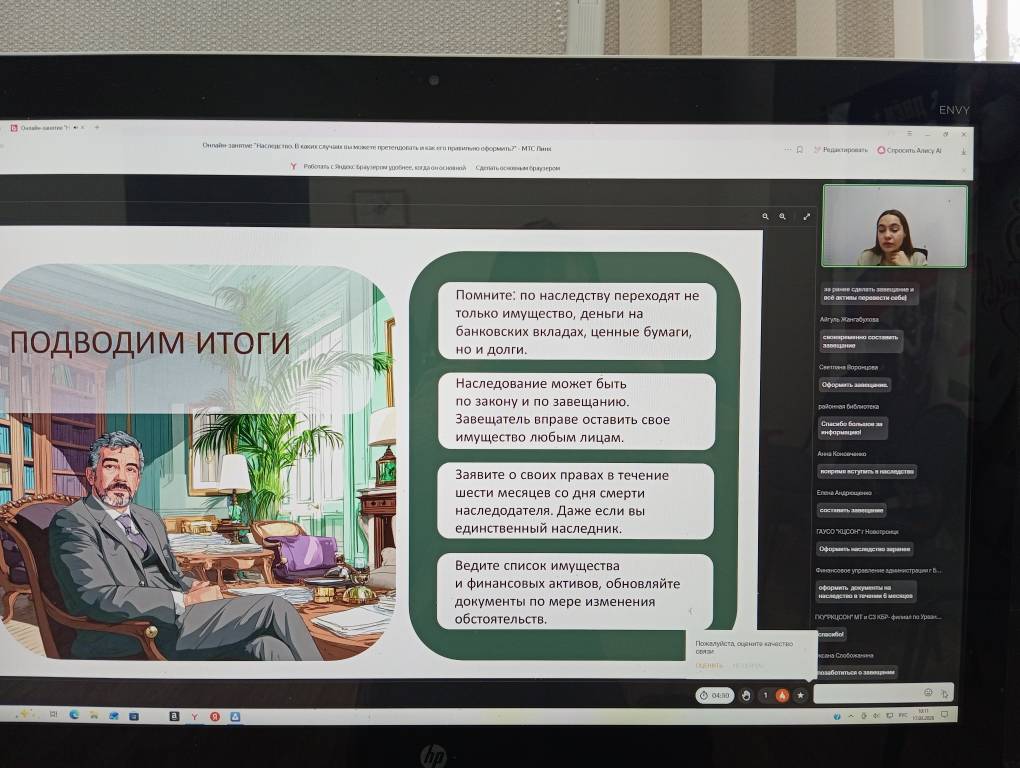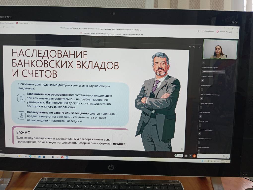 В марте, в рамках проекта Банка России «Онлайн-занятия по финансовой грамотности для старшего поколения» в ОБУСО «Льговский МКЦСОН» проведено онлайн-занятие «Наследство. В каких случаях вы можете претендовать и как его правильно оформить?»
