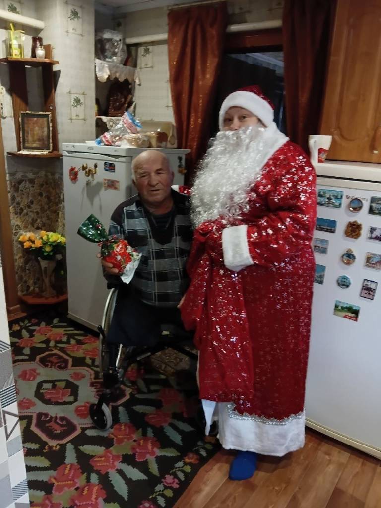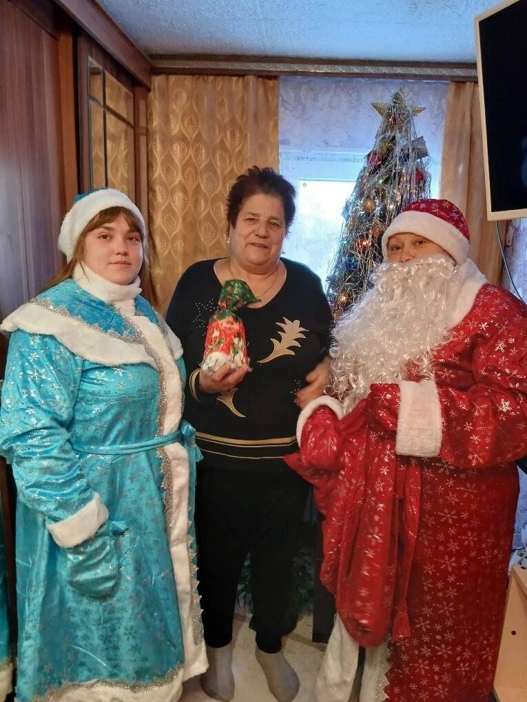 Дед Мороз и Снегурочка поздравили обслуживаемых граждан с наступающими праздниками – Новым Годом и Рождеством Христовым! Пожелали здоровья, счастья, любви и заботы близких, мирного неба над головой и, конечно, исполнения самых заветных желаний в наступающем году!