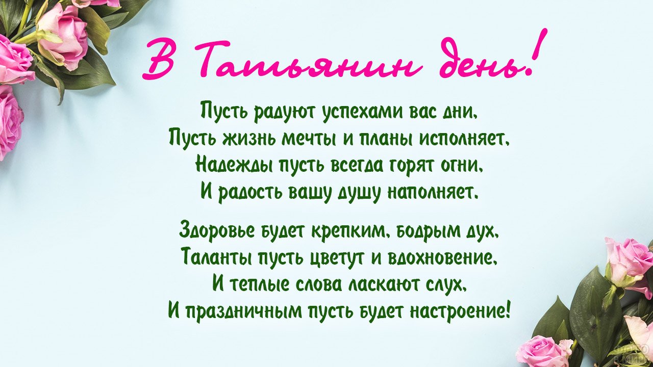 С праздником, дорогие Татьяны! Пусть ваша жизнь будет наполнена светом, теплом и любовью!